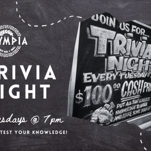 Trivia Tuesdays Trivia Tuesdays are HERE at Olympia Sports Bar & ... 07 Apr7:00 pm - 9:00 pm 1301 W Pioneer Pkwy, Peoria, IL, United States, Illinois 616151301 W Pioneer Pkwy, Peoria, IL, United States, Illinois 61615