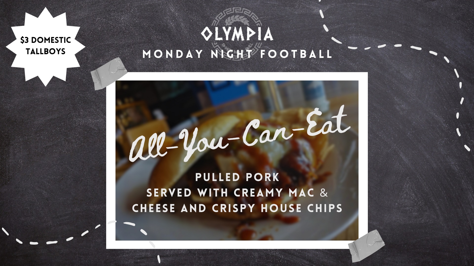 Whether you’re here for the touchdowns or the tailgate vibes, we’ve got your Monday covered. Bring your crew, grab a seat, and let’s make it a night to remember.